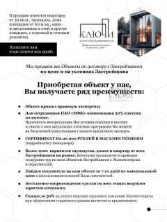 В продаже одноэтажный дом 180 м2 участке 5,5 соток в поселке ''Соты''Возможна покупка с вложением мат капитала, а также любой вид ипотеки: стандартная, льготная 6% (семейная), IТ-ипотека. О ПОСЕЛКЕ:Поселок ''Соты'' самый современный и быстроразвивающийся поселок нашего города. Здесь есть все для комфортного проживания семьям с детьми: волейбольная, футбольная, баскетбольная площадки, хоккейная коробка, зона воркаута, беседки, мангальные зоны и даже собственный пруд! ОБ ОБЪЕКТЕ:*кухня-гостиная с выходом на террасу,*3 спальных комнаты одна из них мастер-спальня. *2 санузла, гардеробная или прачечная, *гараж на 2 авто с параллельной парковкой, котельная,Цена дома указана в предчистовой отделке. Все коммуникации центральные, заведены в дом и подключены.МОЖНО В ИПОТЕКУ:—Цена - 13.000 000 рублей—Ставка - 6%—Платеж - 36 000 рублей Для сотрудников ПАО ''ММК'' действует компенсация 50% платежа по ипотеке. Хотите посмотреть этот дом или подобрать похожий вариант? Звоните! Проведу подробную консультацию, отвечу на все вопросы и с радостью организую персональный показ. С уважением, специалист по недвижимости, Юлия. АН ''Ключи''.Арт. 118015789