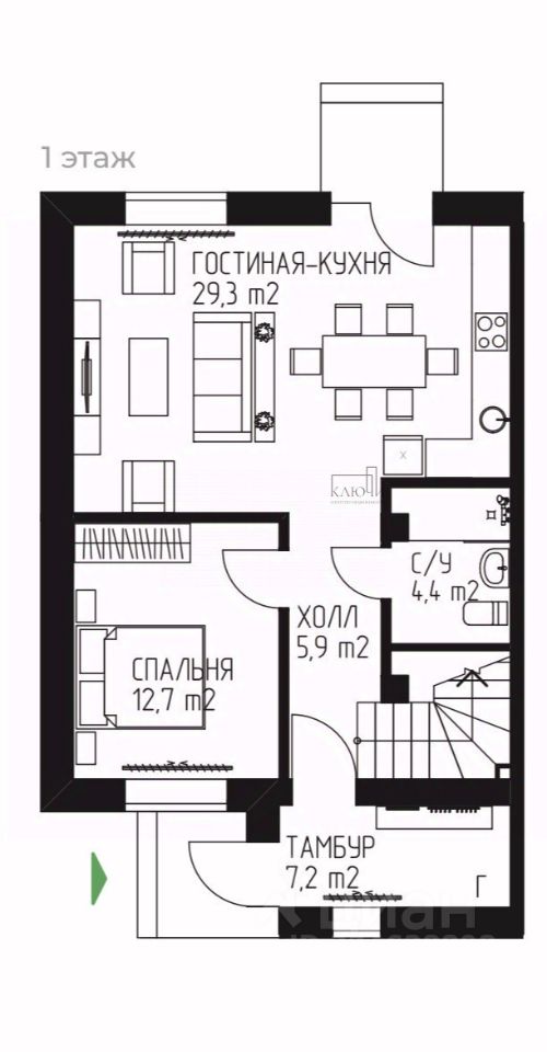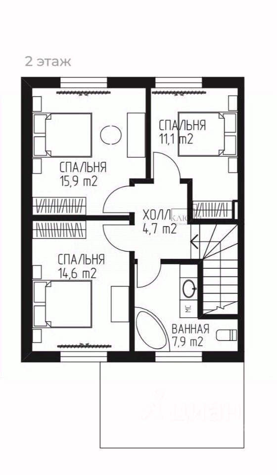 О объeктe: кухня-гостиная с выходом на участок, 4 спальных комнаты, 2 санузла.