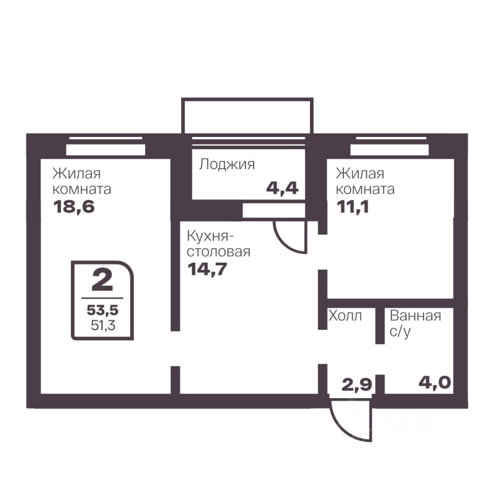 Общая площадь51,3 м2