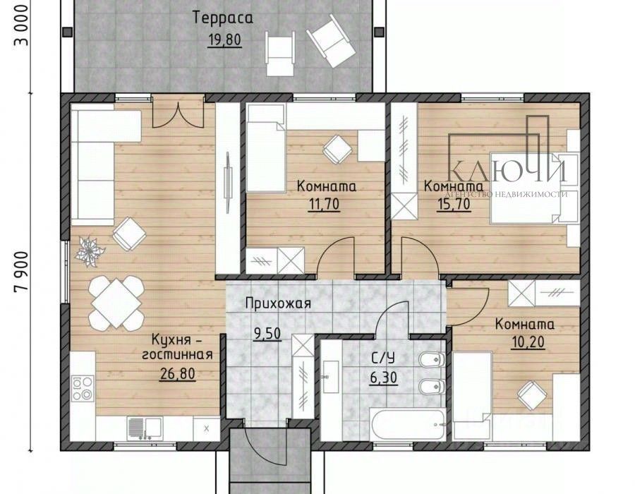О объекте: Планировка дома включает в себя: площадь дома 82кв. м, площадь участка 4 сотки, 3 спальные комнаты, кухня-гостиная с выходом на участок, сан узел, большая прихожая, коммуникации заведены в дом.