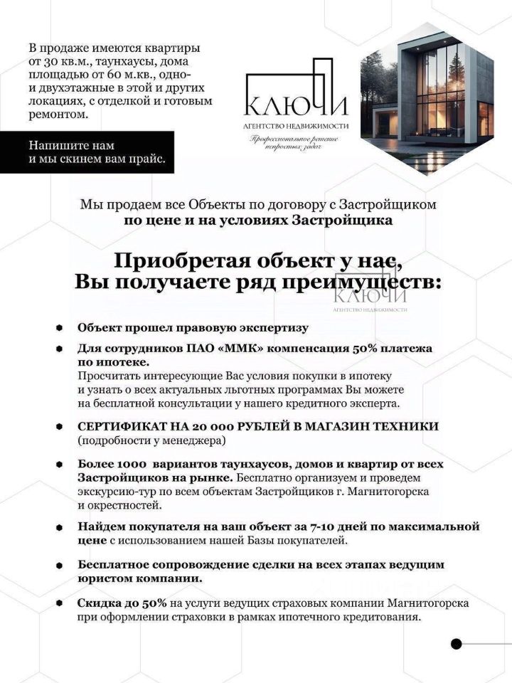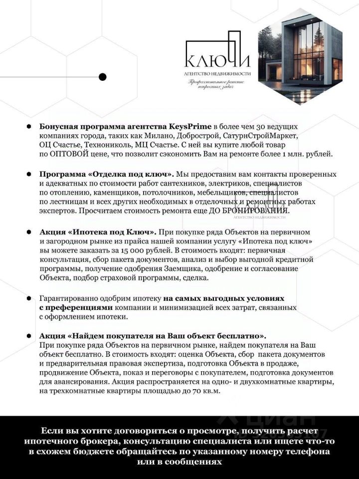 ВЫГОДНАЯ ИПОТЕКА ОТ 6% на новостройки! Семейная ипотека ИТ-ипотека Прямая продажа от Застройщика — без комиссий и переплат! Продадим вашу квартиру за 710 дней по МАКСИМАЛЬНОЙ цене Посчитаем стоимость ремонта и дадим контакты проверенных отделочных бригад.