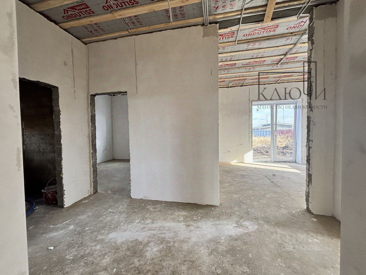 Одноэтажный дом 80 кв.м, 5 соток земли. Залит теплый пол, выровнены стены, разведена электрика.
