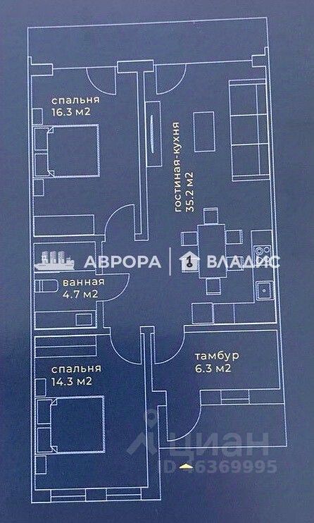 ПЛАНИРОВКА: - Тамбур - 6,3м². - Кухня - гостиная с выходом в сад - 32,5м². - Комната 1 - 14,3м². - Комната 2 - 16,3м². - Санузел - 4,7м².