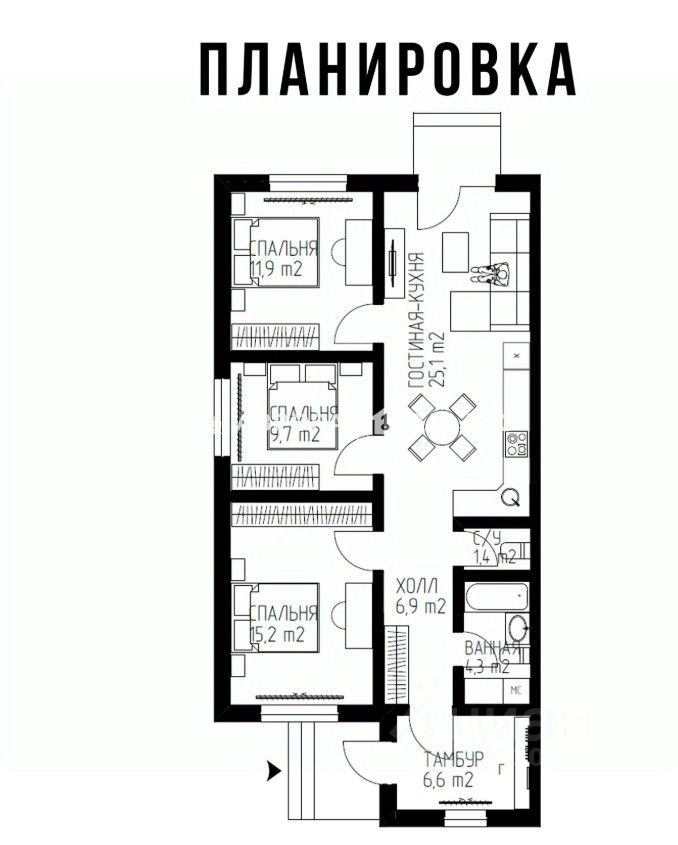 Представляем вашему вниманию современный и комфортный дом площадью 85 квадратных метров, расположенный на участке в 4 сотки. Это идеальное место для вашей семьи, где гармонично сочетаются функциональность и эстетика. В доме 3 спальни :15,2,м2 11,9м2 9,7м2 просторная кухня гостиная 25,1 м2 Надежность и качество основа нашего строительства: Фундамент: Монолитная армированная железобетонная плита гарантия долговечности и устойчивости вашего дома. Стены: Возведены из современных СКБ блоков, утеплены фасадным утеплителем и облицованы комбинированной декоративной штукатуркой по армирующей сетке. Элегантные вставки из сайдинга и кирпича придают фасаду индивидуальность и привлекательный внешний вид. Кровля: Двускатная крыша, покрытая надежным и долговечным шингласом, обеспечит защиту от любых погодных условий. Окна: Ламинированные окна из трехкамерного ПВХ профиля с двухкамерным энергосберегающим стеклопакетом создадут в доме тепло и тишину, а также помогут сэкономить на отоплении.